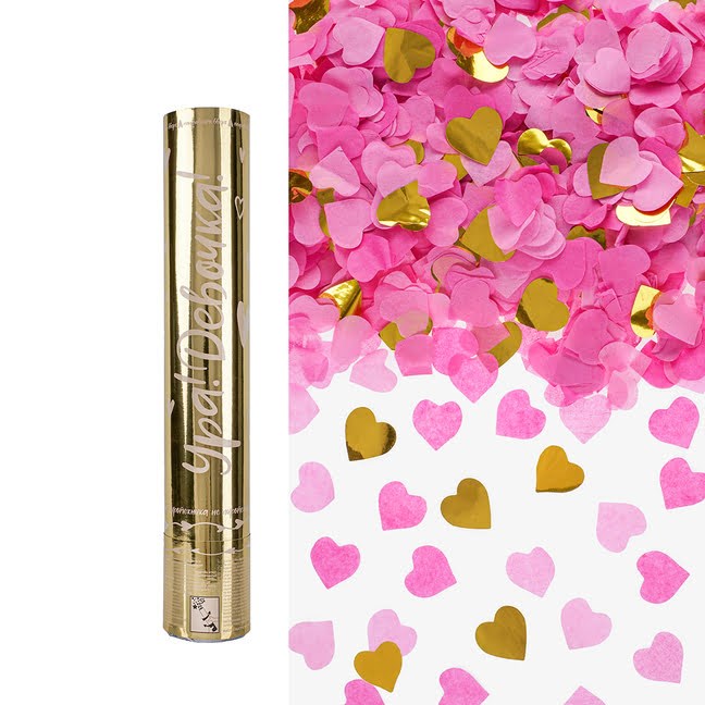 Хлопушка Бумфети 30см Ура Девочка! Фольгир/бум сердца Розовый/Золото 723007