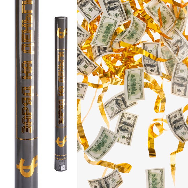Хлопушка Бумфети 60см Заряд Деньги Доллары и Евро Фольгир серпантин Золото 723009