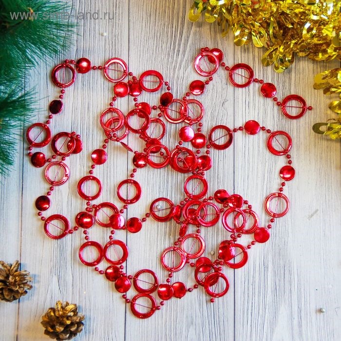 Бусы на елку 2,7м Кольца красные d-10мм 2371382