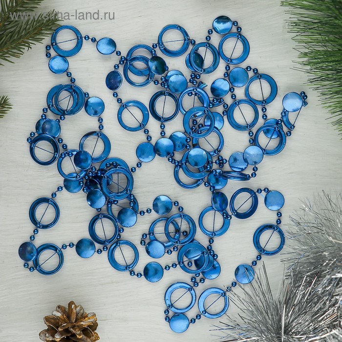Бусы на елку 2,7м Кольца синие d-10мм 2371369