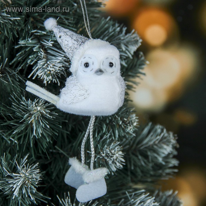 Мягкая птичка белая совушка 13см в колпаке