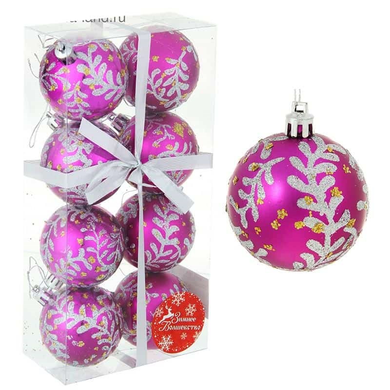 Набор шаров пластик d-6см 8шт Серебристая веточка Фуксия 1332611
