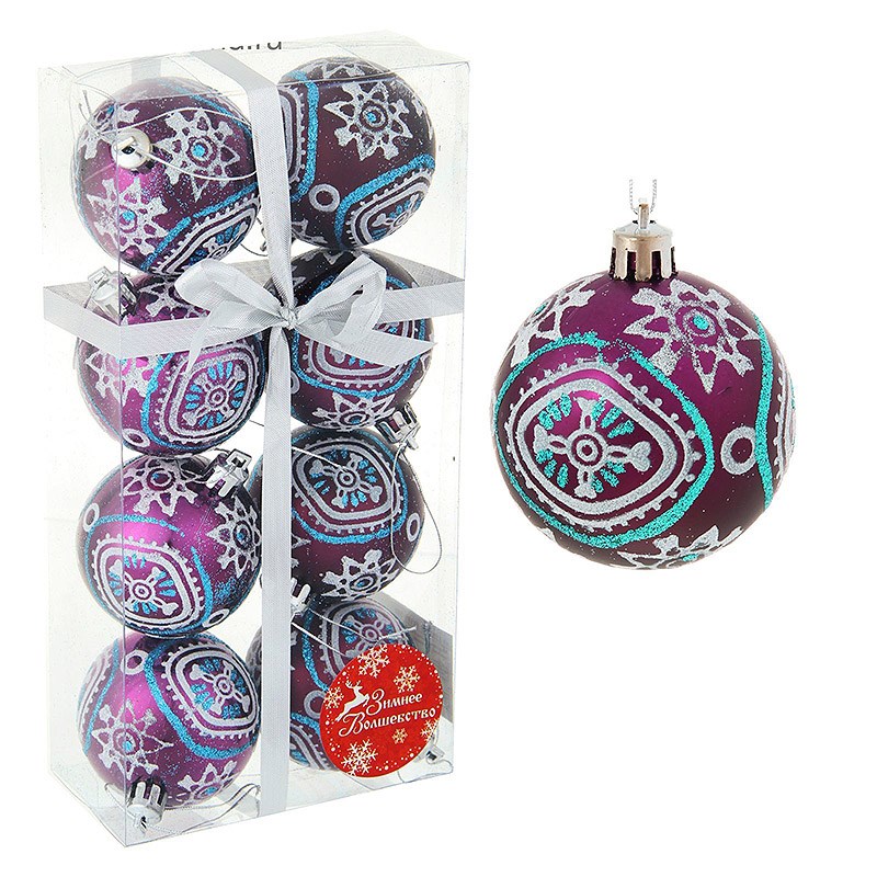 Набор шаров пластик d-6см 8шт Сказочный узор Фиолетовый 1332615