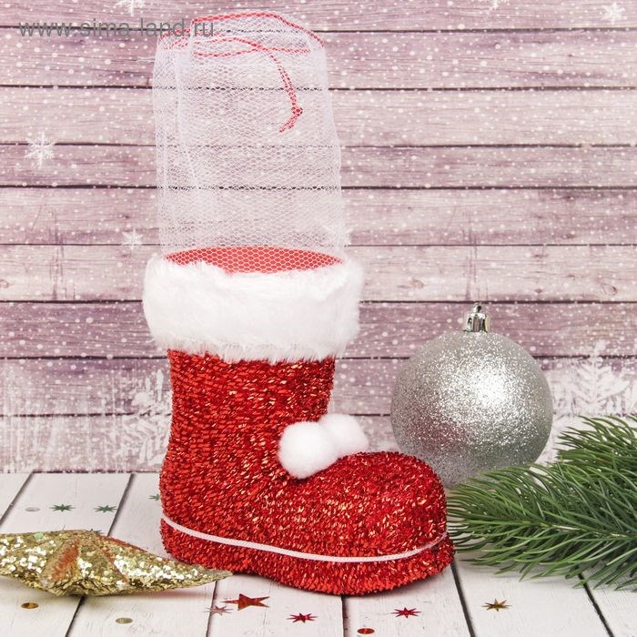 Подарочная упаковка Сапожок красный с завязками 2172630