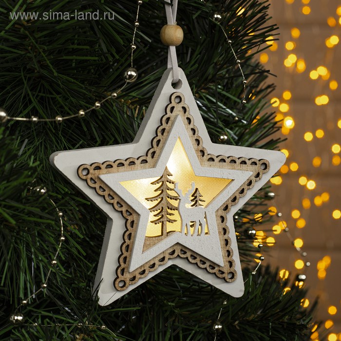 Подвеска световая Звезда и лес 13*13*2см 4 LED Т/БЕЛЫЙ 4364315