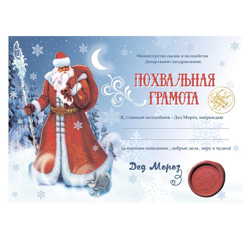 Похвальная Грамота от Деда Мороза формат А4