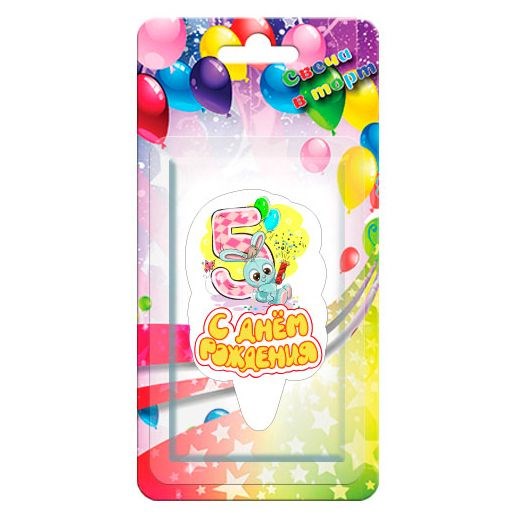 Свеча Надпись С Днем Рождения! Цифра 5 Зайчик