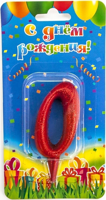 Свеча Цифра 0 Овал Красный с блестками 8см