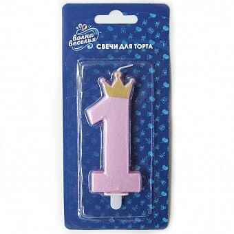Свеча Цифра 1 Корона для принцессы Розовый с блестками 8,8см