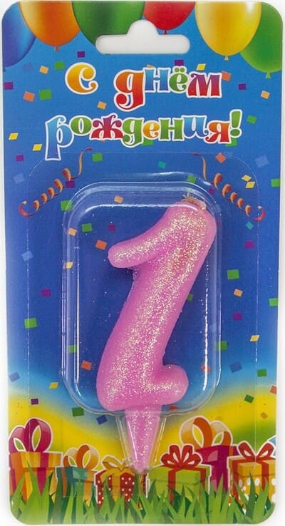 Свеча Цифра 1 Овал Розовый с блестками 7см