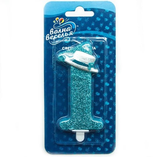 Свеча Цифра 1 Шляпа для джентльмена Голубой с блестками 9см
