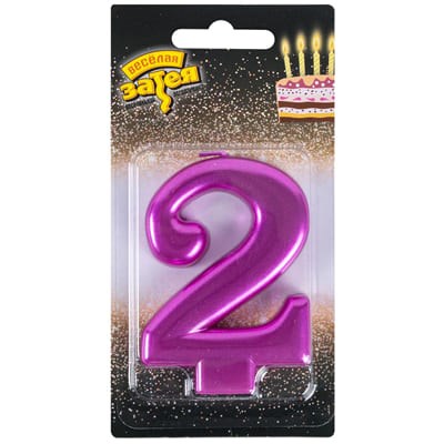Свеча Цифра 2 Ярко-розовая 8см