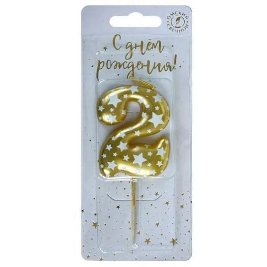 Свеча Цифра 2 Звездочки Золото 4,3 см