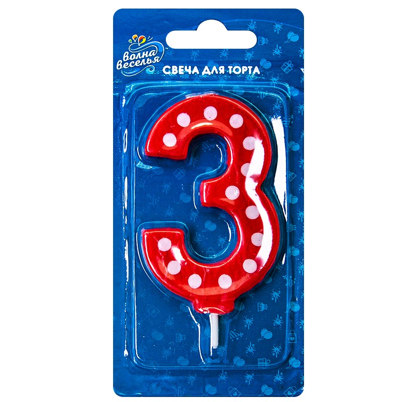 Свеча Цифра 3 Красная в белую точку 7,5см