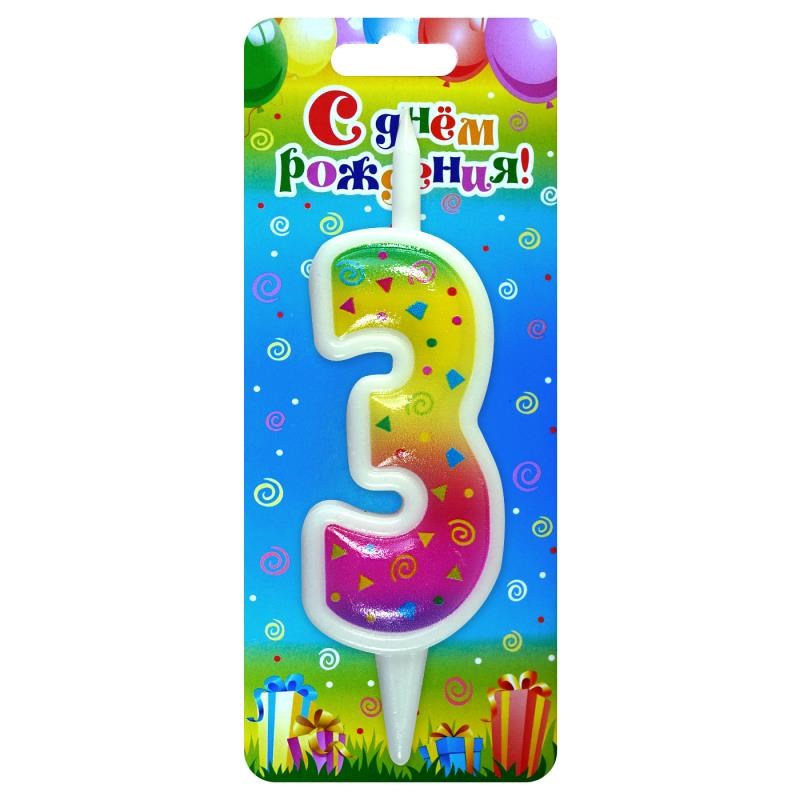 Свеча Цифра 3 Радужная
