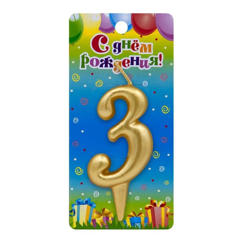 Свеча Цифра 3 Универсальная Золотая