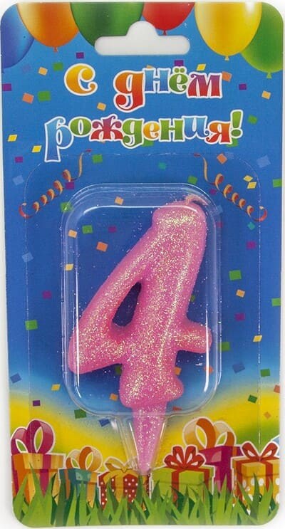 Свеча Цифра 4 Овал Розовый с блестками 7см