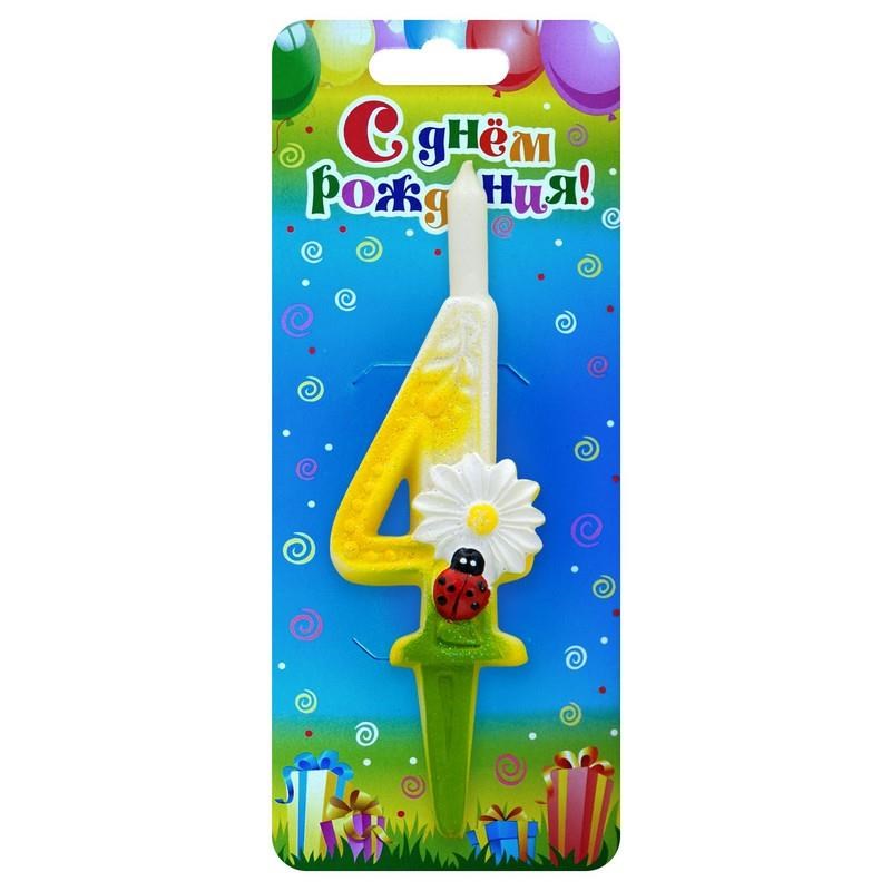 Свеча Цифра 4 С ромашками
