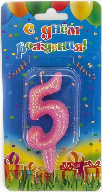 Свеча Цифра 5 Овал Розовый с блестками 7см
