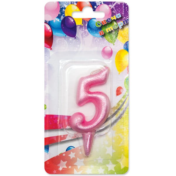 Свеча Цифра 5 Розовый Перламутр 8см