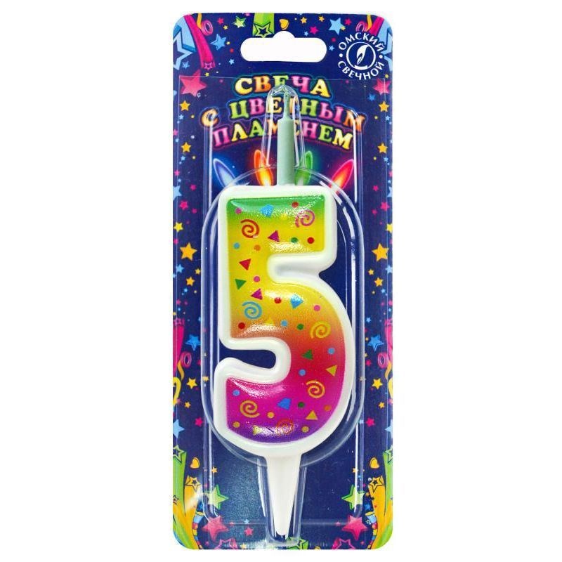 Свеча Цифра 5 Цветное пламя 12см