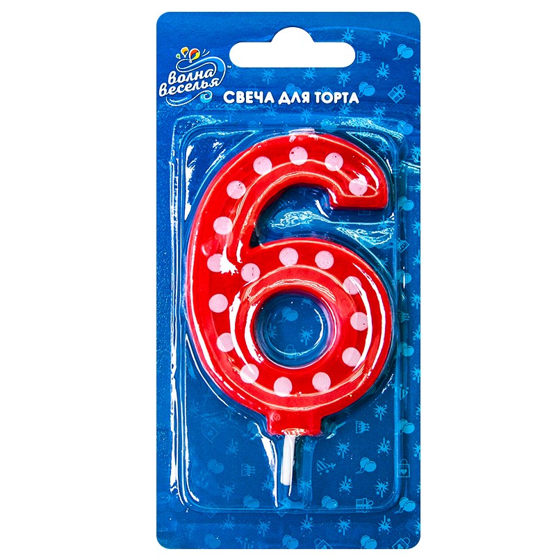 Свеча Цифра 6 Красная в белую точку 7,5см