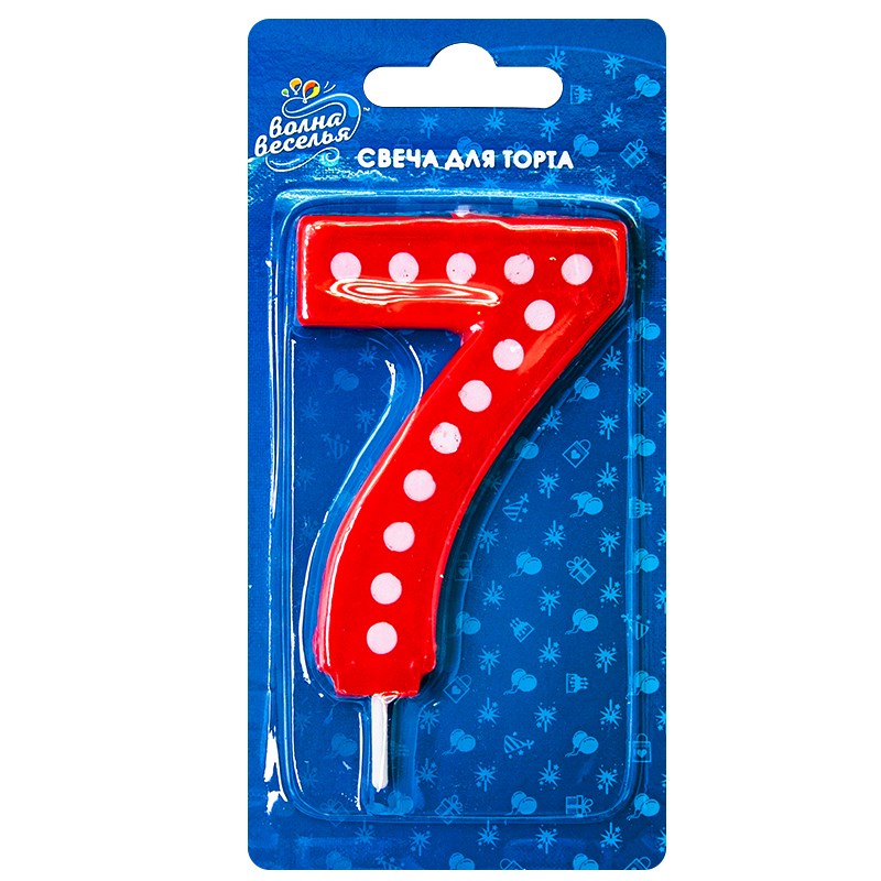 Свеча Цифра 7 Красная в белую точку 7,5см