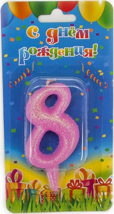 Свеча Цифра 8 Овал Розовый с блестками 7см