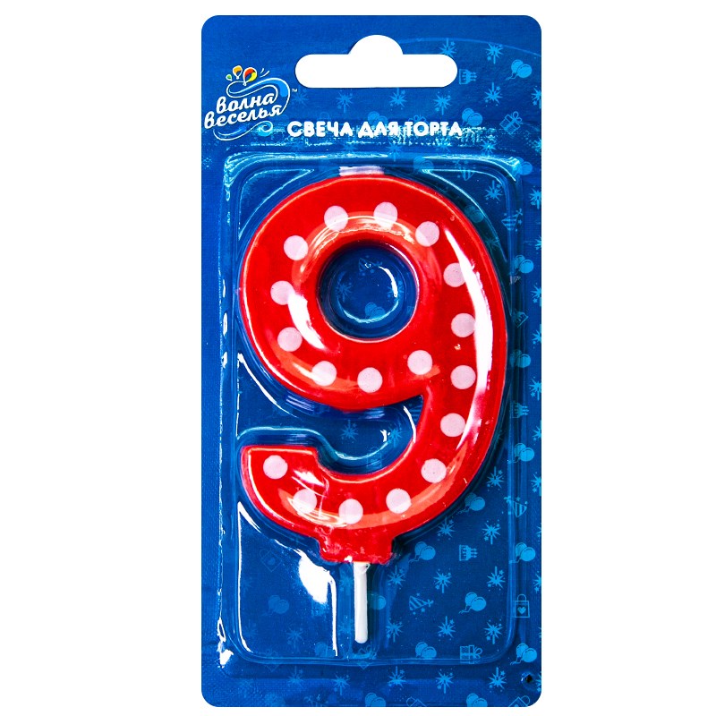 Свеча Цифра 9 Красная в белую точку 7,5см