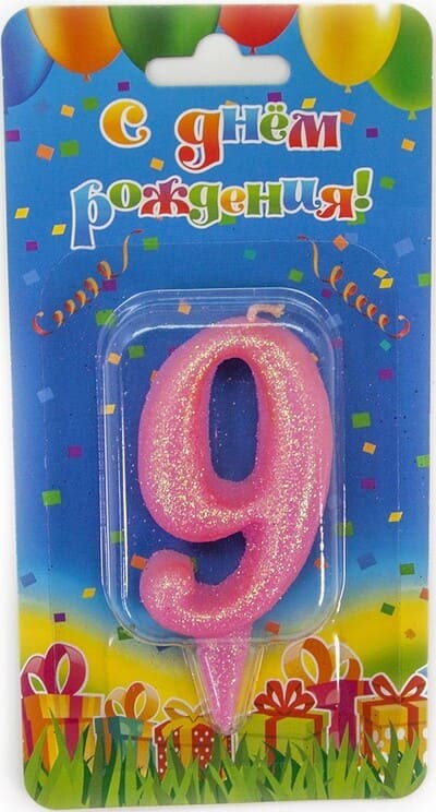 Свеча Цифра 9 Овал Розовый с блестками 7см