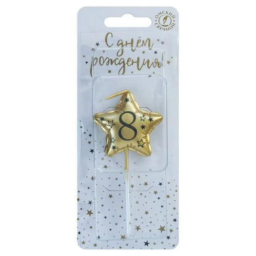 Свеча Звезда 8 Золото Металлик 9 см