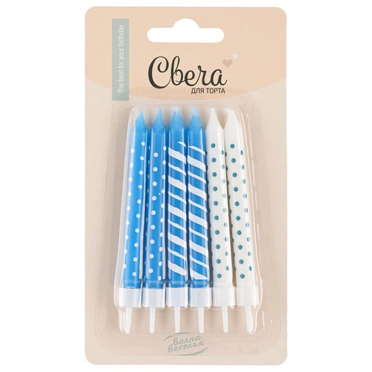 Свечи Голубой микс 8 см 6 шт. с держат.