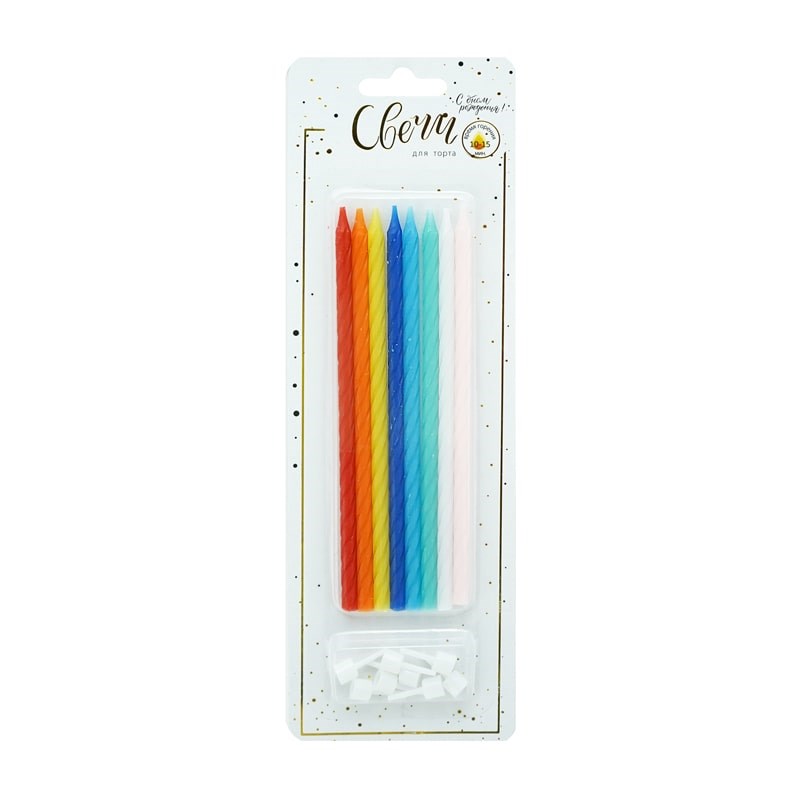 Свечи классические XL Витые (Ассорти неон) с держателями 8шт 15см