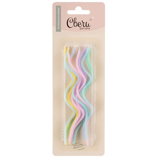 Свечи Коктейльные Тонкие спирали Ассорти Макарунс 0,2*12 см 12 шт.