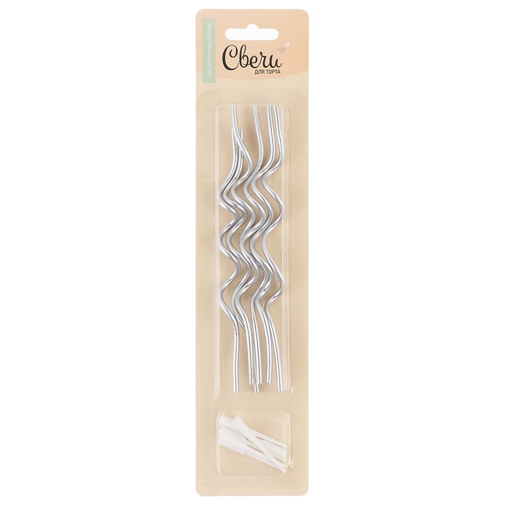 Свечи Коктейльные Тонкие спирали Серебро Металлик 14,5см 6шт