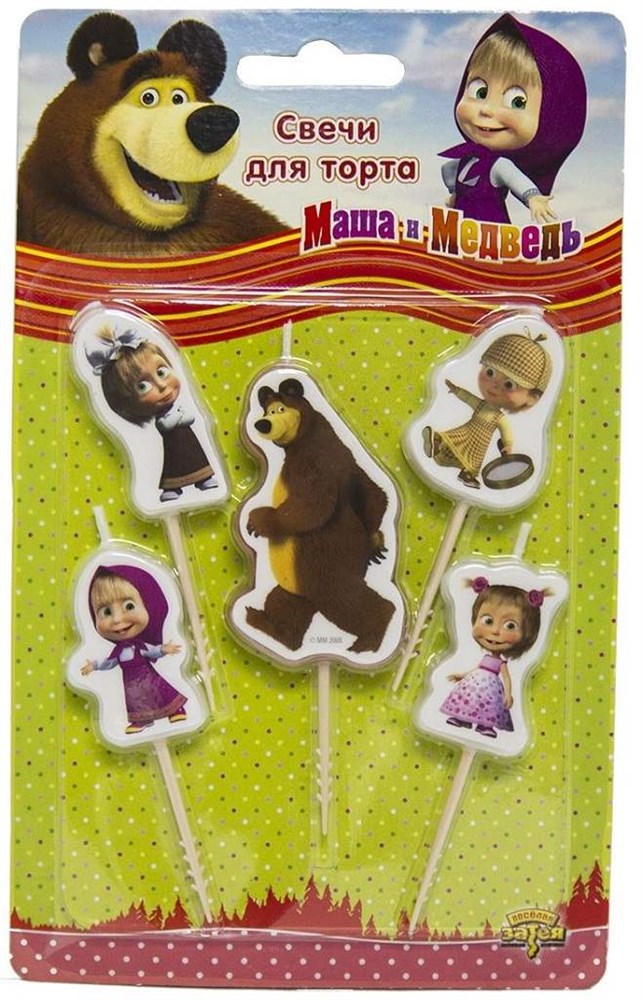 И следопыт, и ученица, и именинница, и такая привычная нам озорница в сарафане. Такие разные и веселые свечи Маша и неизменно добрый Миша. В упаковке 5 свечей на пиках, которые сделают ваш торт живым!