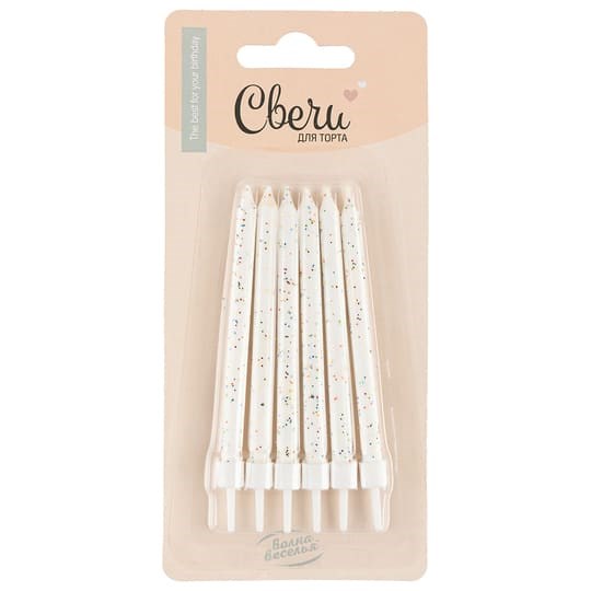 Свечи Яркие искры Белый с блестками 8см 6шт