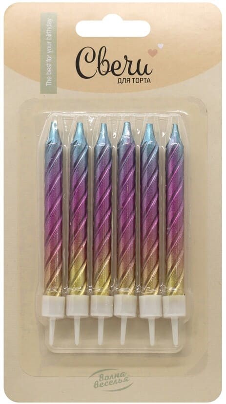 Свечи Яркое сияние Градиент 0,7*8 + 2 см 6 шт. с держат.