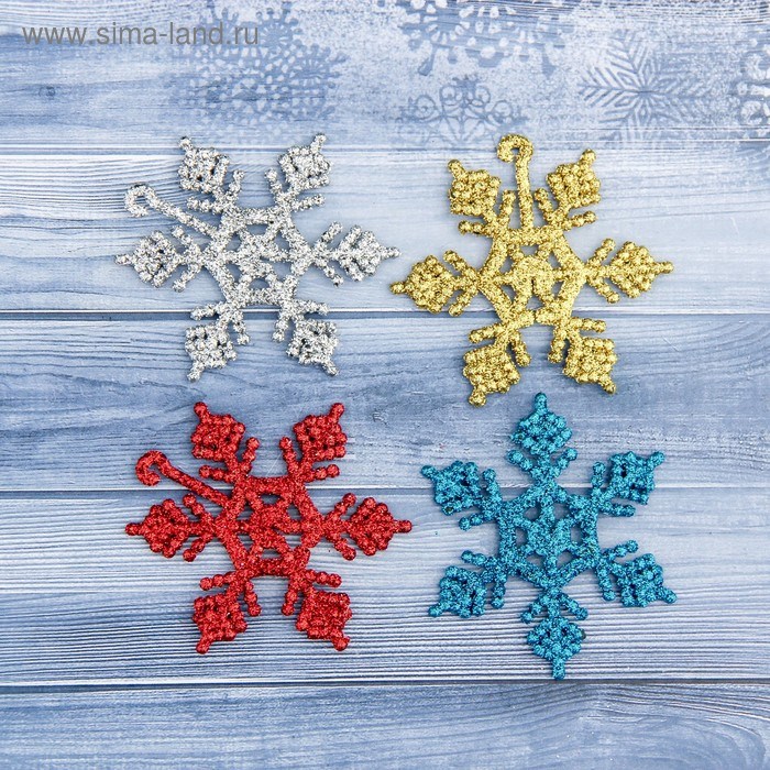 Украшение елочное Снежинки 4шт 5,5*5,5см микс 3556980